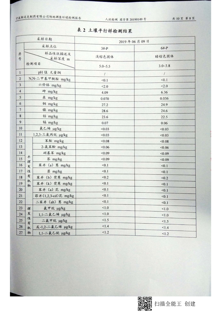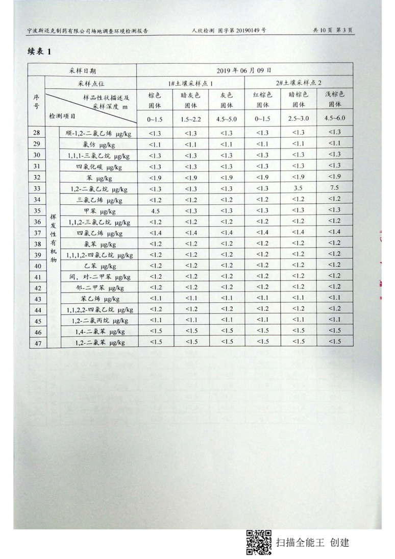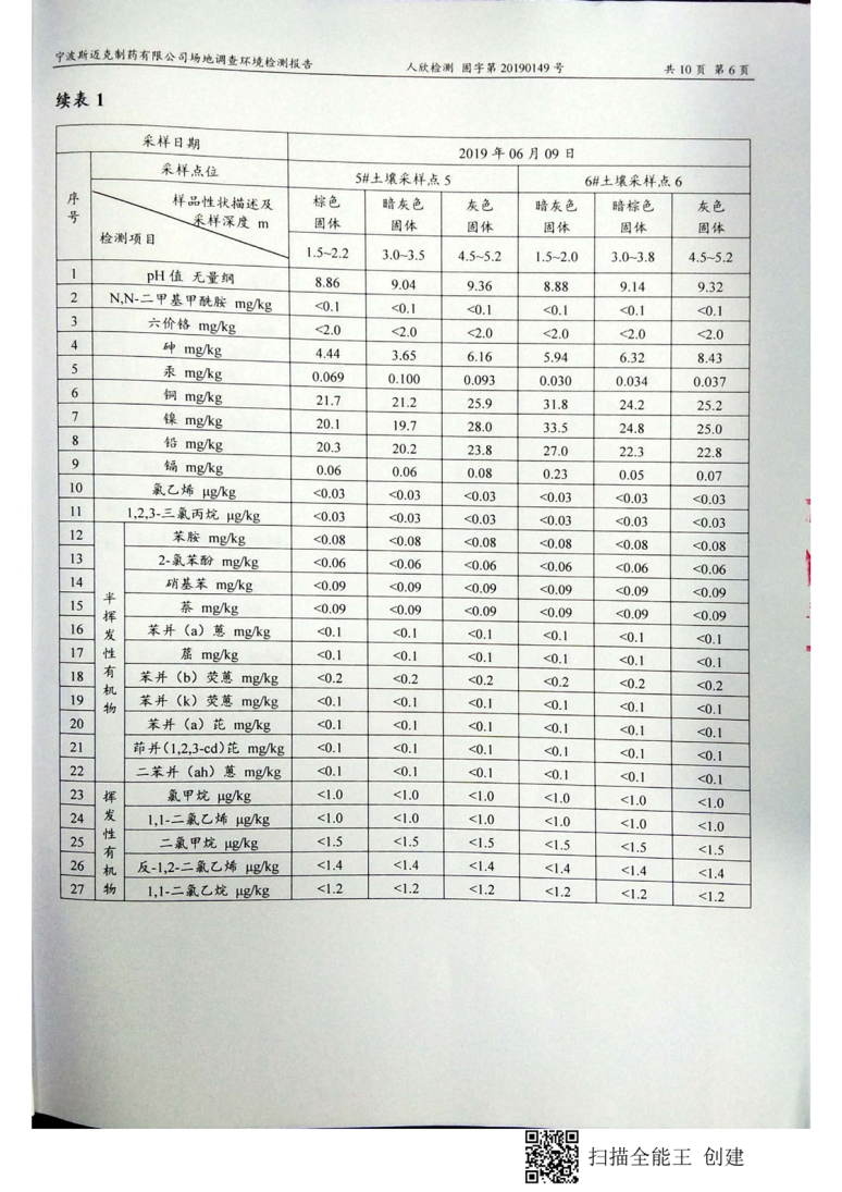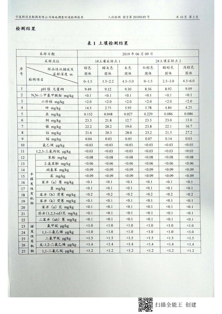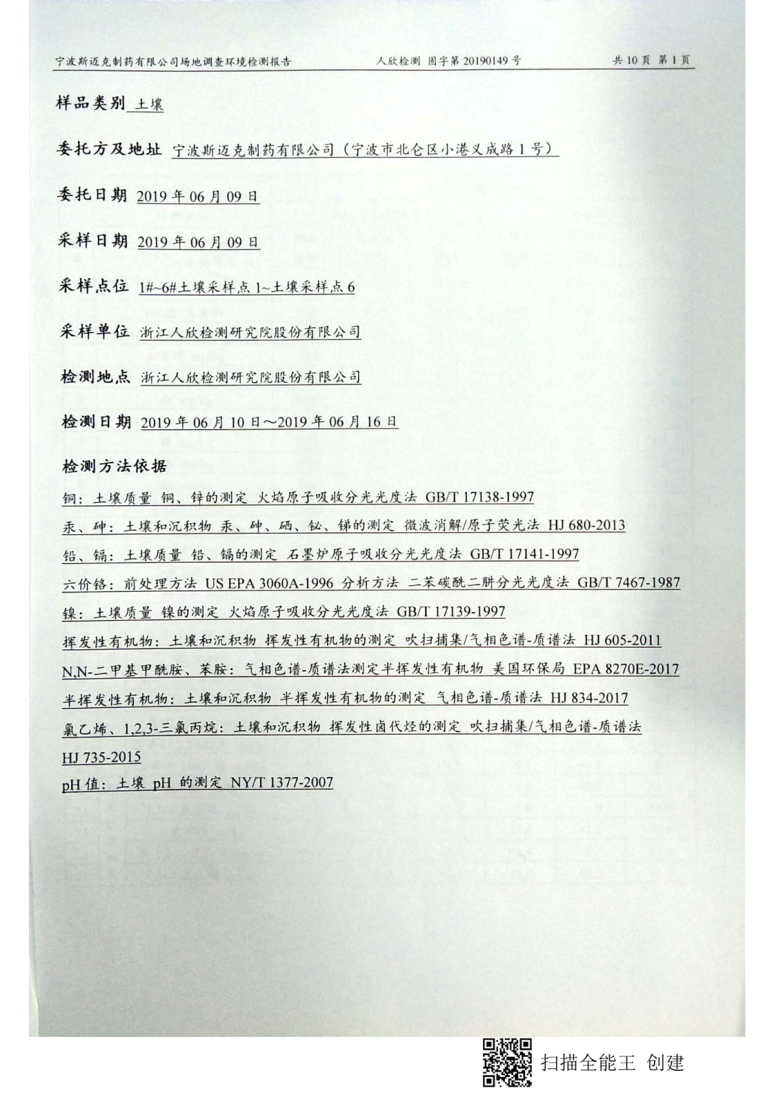 寧波斯邁克制藥有限公司土壤檢測(cè)報(bào)告公示